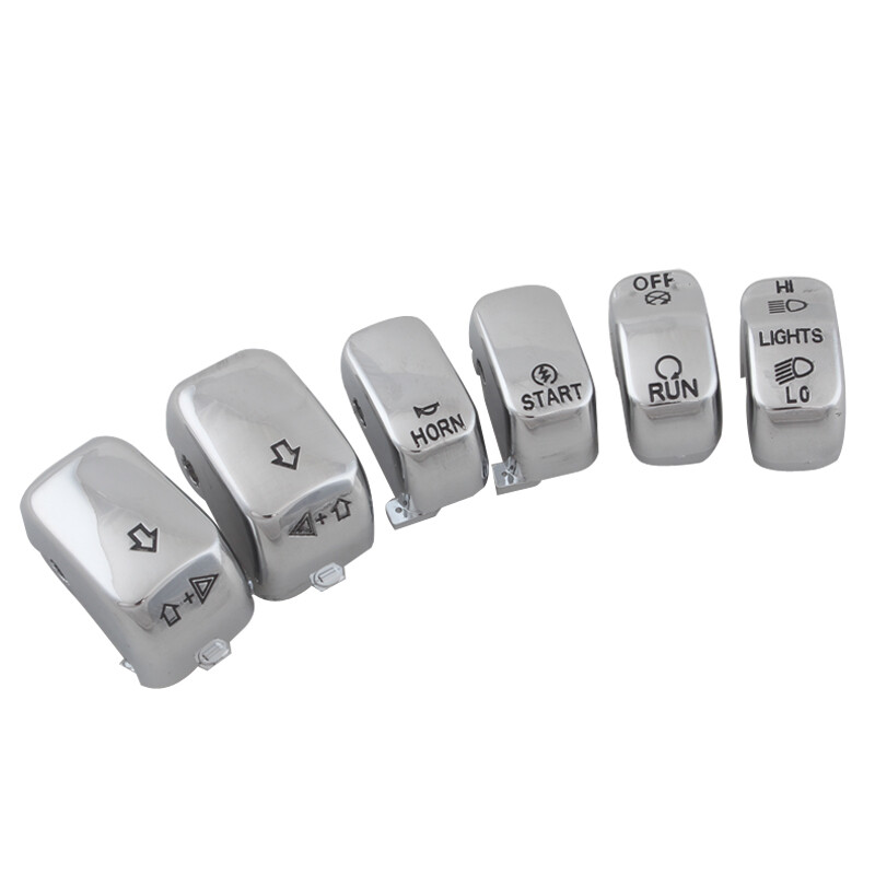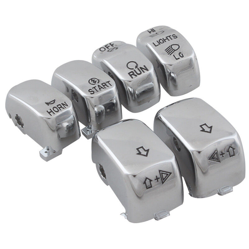 Product DescriptionChrome Hand Control Switch Housing Cap Button For Harley Touring Softail 96-13Specification:Material: ABS PlasticColor: ChromePosition: left &right &frontQuantity:6pcs Feature: Quality guaranty All items you buy from our store is