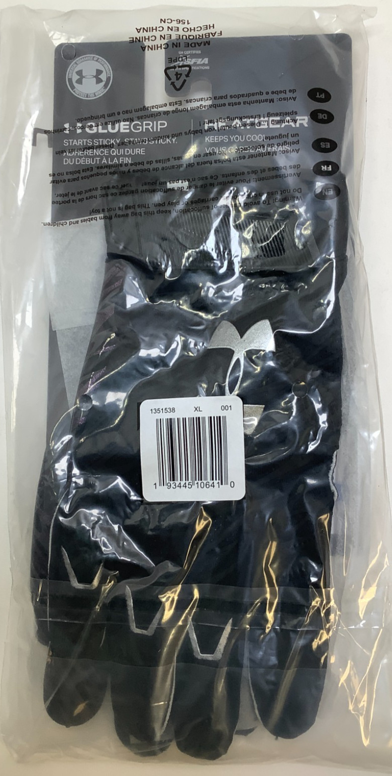 CLOSEOUTSFORLESS Under Armour UA Spotlight Football Receiver Gloves, Adult, Black X-LargeFree Shipping!!! PRODUCT DESCRIPTIONUnder Armour UA Spotlight Football Receiver Gloves, Adult, BlackX-LargeFree Shipping!!!RESTOCKING FEESCustomers need to be aware that if an item is returned opened but was originally sold "Factory sealed" and "Unopened", customers may be charged up to 15% restocking fee. This fee is typically charged to protect sellers from any potential losses incurred from not being able to resell the item as new again.RETURN POLICYWe accept returns within 30 days of purchase. Please submit a return request through your eBay dashboard and you will be provided with the proper return label.BEST OFFERSWe are more than happy to consider all offers, but please make sure it is a fair price on both ends. Our management team handles the pricing and offers, so PLEASE use the "Make Offer" feature within the listing. If Best Offer is available, you will find a button under Buy It Now. Some listings are already marked at the lowest available price, and will not have the Best Offer feature in place.SHIPPING All orders are shipped within 24 hours of payment. We ship all orders Monday - Friday, 9:30am ET - 3:30pm ET. No shipping is done on weekends, however we do respond to messages 7 days a week and as soon as possible. Tracking number are provided once the order/shipment process is complete.FEEDBACKWe leave positive feedback for all buyers upon shipping. We ask that if you are not satisfied with our product or service, please contact us so we have the chance to fix the issue before you leave neutral or negative feedback. CONTACT US We strive to review offers and answer questions quickly, but please be aware that we are a brick and mortar business with retail hours: Monday - Friday, 9:00 a.m. - 5:00 p.m. EST. Messages submitted late in the day, will be answered the next day. Browse Our Store Everything from Electronics to Home Decor, Office Supplies, Wholesale Lots and More. Everything for ANYONE looking for a deal!