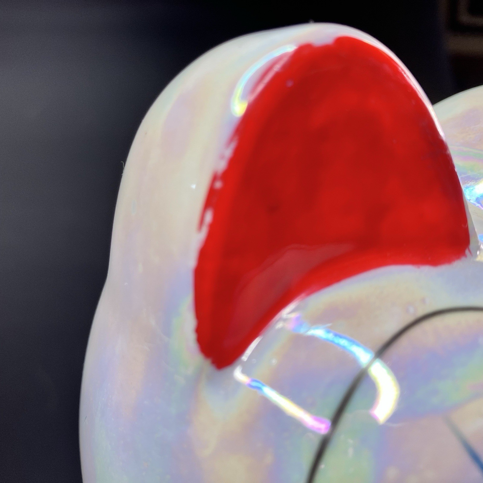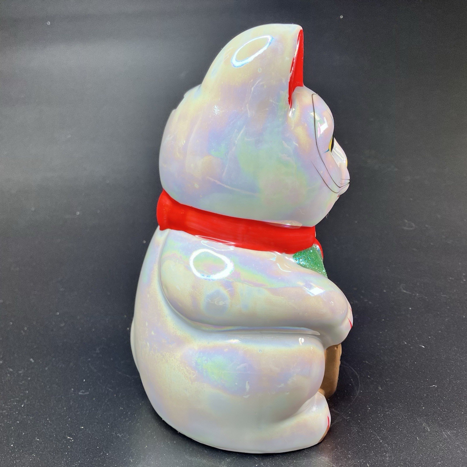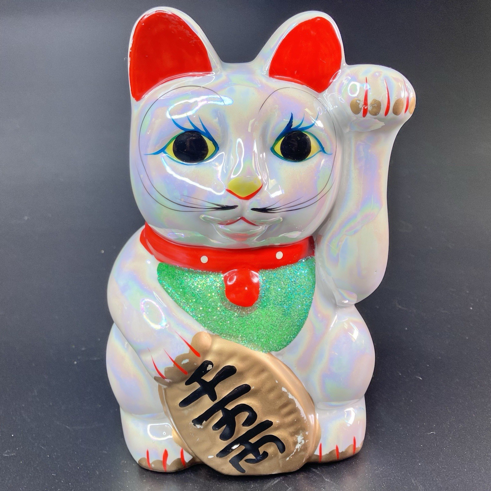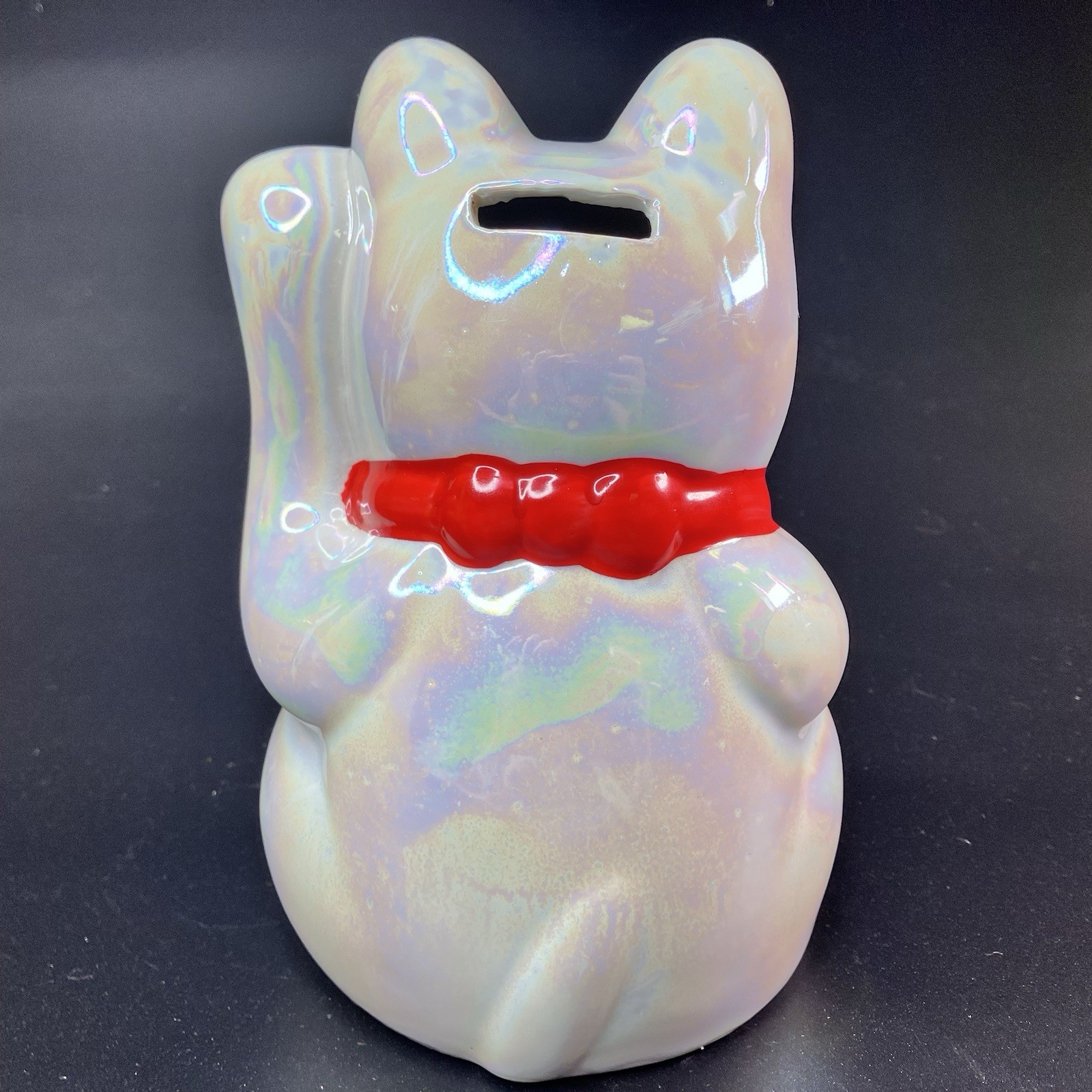 Vintage 8" Maneki Neko Beckoning Cat Coin Bank, Pearl Iridescent Japan
