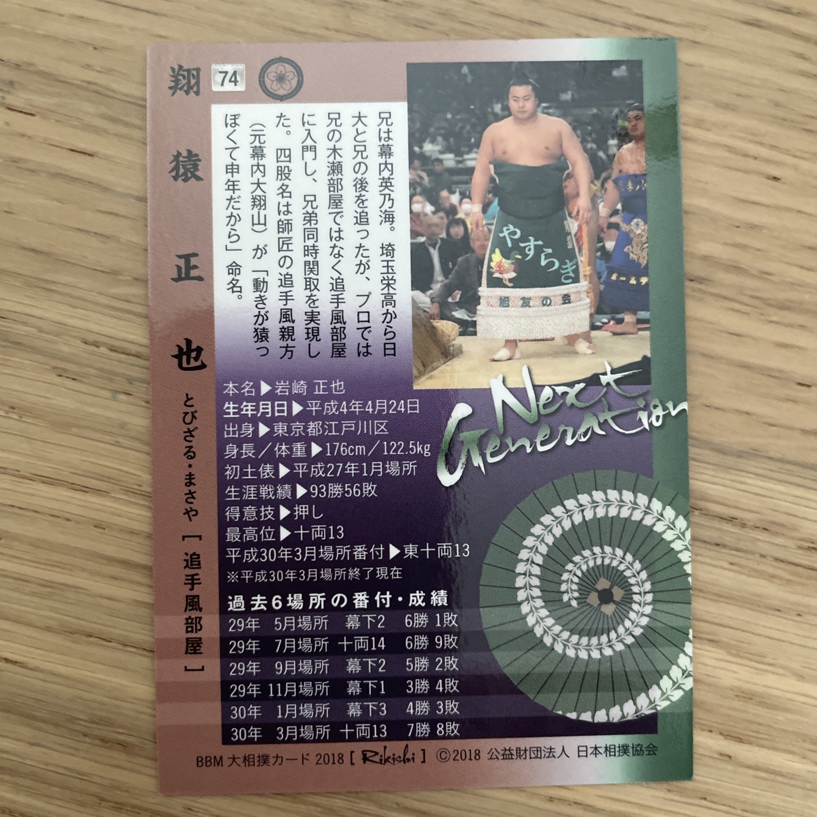 Tobizaru Masaya BBM 2018 Sumo Wrestling Card Next Generation #74