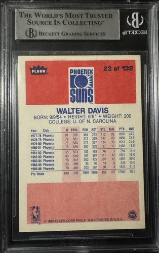 Walter Davis 1986 Fleer #23 Signed NBA Card, Beckett BAS Auth Slabbed