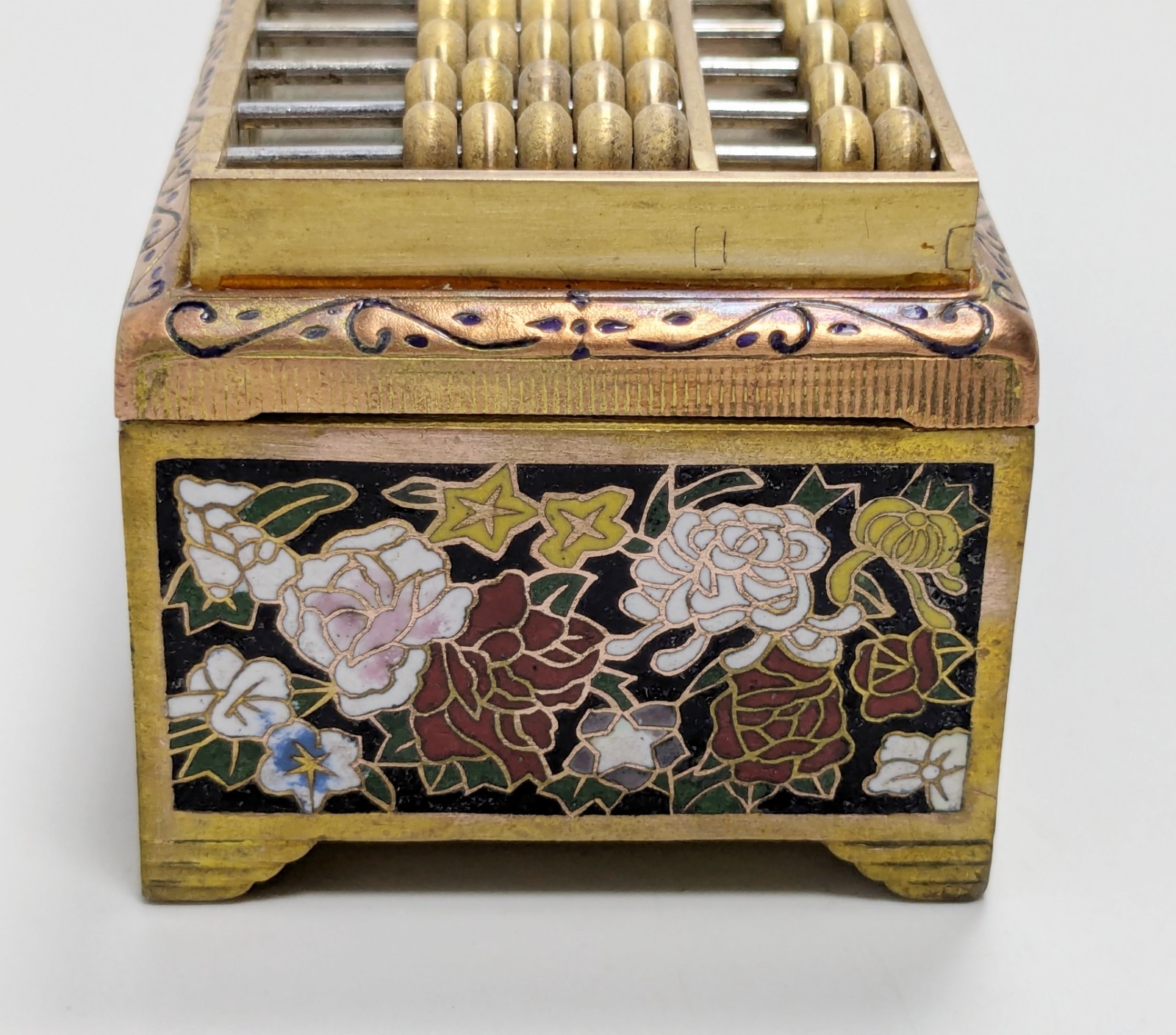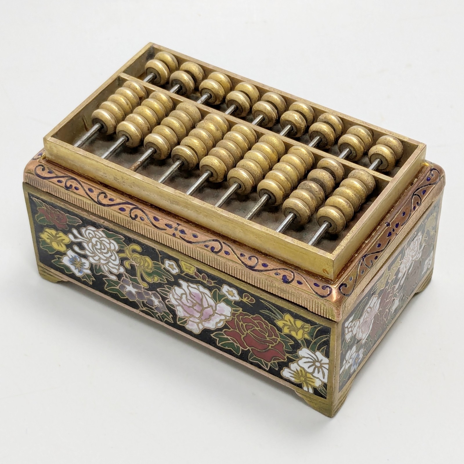 Vintage Asian Cloisonne Abacus Trinket Box, Floral Enamel, Preowned