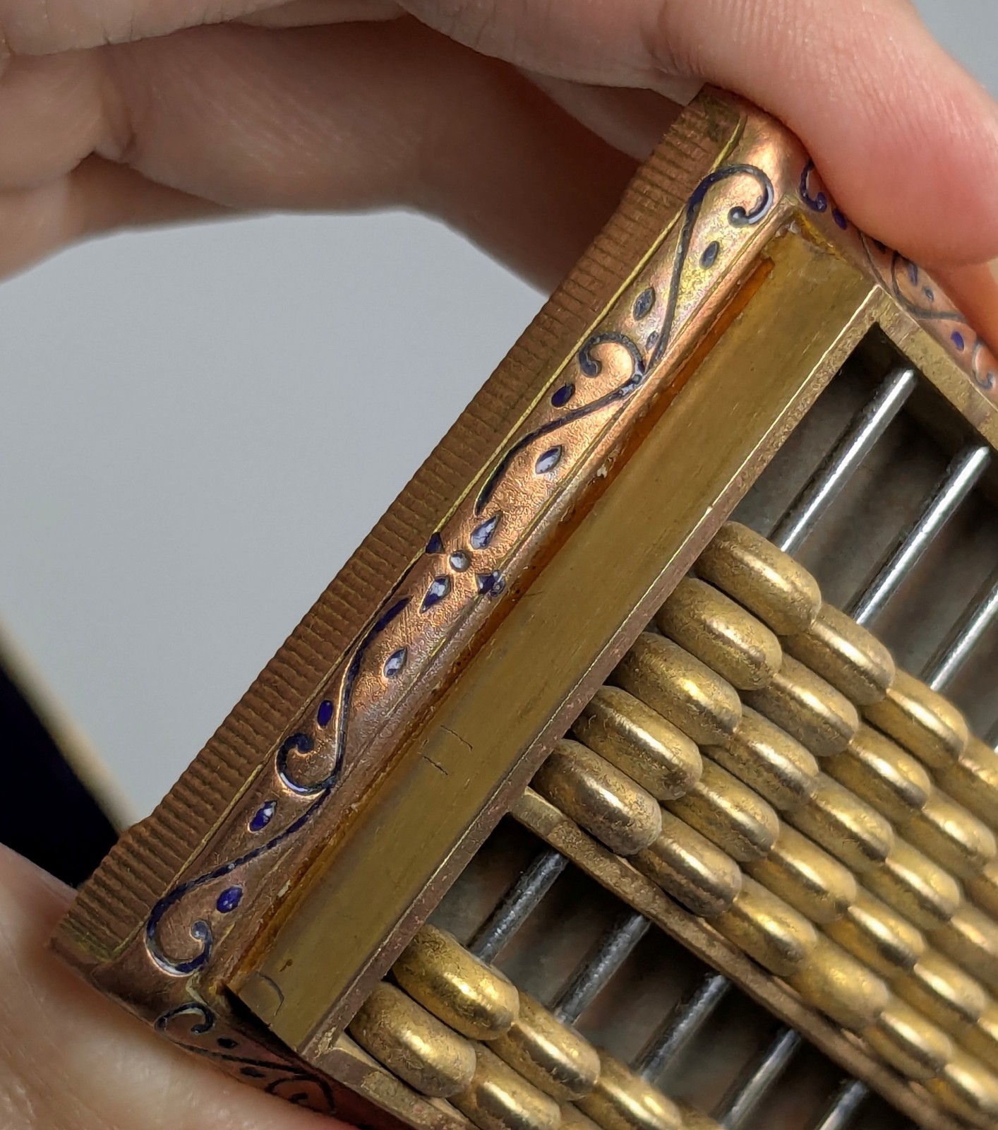 Asian Cloisonne Abacus Trinket Box Vintage Preowned @media screen and (max-width: 767px) .tg col .tg-wrap }Vintage, small trinket box. Gold tone loss. Some rust, greening and oxidization to the metal. See images. SMALL trinket box with cloisonne decoration on sides and blue cloisonne on the interior. Size / Dimensions:Exterior longest length: 88.7 millimeters approx. Width: 54 millimeters approx.Height: 46.4 millimeters approx.Terms of SaleWhen you bid on or buy an item, you're agreeing to the terms of sale. By bidding or buying you are agreeing to have read and understood the entire listing description (including the terms of sale) and reviewed all images provided. Vintage, Used or Antique items will show wear and imperfections. Condition grading should be considered an opinion and not fact.Paperwork, Certificates of Authenticity, Warranty are not included unless otherwise noted in the listing.Used items will not include a warranty or guarantee of "like new" performance unless specified in the description. Items described as "For Fix / For Parts" or "Untested" are sold in AS IS condition. Buyer should expect / anticipate the added cost to repair or refurbish the item of items listed in AS IS condition. Seller disclaims any implied warranties of title, merchantability, fitness for a particular purpose, and non-infringement.All images and/or video provided are of the actual item for sale. Unauthorized use and/or distribution of images is prohibited. Seller is not affiliated with or endorsed by any of the brands sold on eBay.PaymentComplete Checkout on eBay using eBay Checkout.Verify that your eBay shipping address and contact information is current and correct PRIOR to completing the checkout process. Payment is expected within 3 days of auction close. If you plan to purchase or bid on multiple items, please inquire prior to checkout.Sales TaxDepending on the delivery address, applicable tax will be automatically collected by eBay during checkout.ShippingDomestic Shipping Only.Orders can only be shipped to the exact shipping address provided by eBay.Shipping Carrier: USPS. All orders include tracking service. Mondays-Fridays. Excludes National and State Holidays. Estimated Delivery times may not be accurate. Seller reserves the right to ship with Signature Confirmation Required for any order.Freight Forwarding ShipmentsBuyers who provide an address to a Freight Forwarding Service are required to notify seller prior to or during checkout. Failure to do so may result in cancellation of your order.Buyers are responsible for ensuring that any and all items that you export from the United States using the services provided by a Freight Forwarding Service comply with all laws and regulations of the United States and the destination / import country. Seller is not liable or responsible for any losses, damages or delays due to the actions or inaction of any third party freight forwarding shipping services.ReturnsReturns must comply with the terms and conditions of eBay's Money Back Guarantee Policy.All Returns must be started and completed on eBay. We do not accept returns unless the item is considerably misrepresented. Measurements should be considered approximate. Color pictured may vary slightly due to differences in monitor / screen quality or lighting. To be eligible for a return, your item must be in the same condition that you received it. Your returned item must be in the original packaging and/or include all of the original packaging.All Returns and Refunds are to be initiated and completed on eBay only.Packages that are returned by USPS for insufficient address or the buyers' failure to retrieve / reschedule delivery will be refunded minus the actual shipping cost. Unauthorized Returns and Packages marked "Undeliverable as Addressed" or "Unclaimed" will be refunded minus actual shipping and processing costs.ClaimsIf your purchase is damaged in transit, please save all packaging materials and contact us immediately using eBay messages.We will process any claims with the carrier and may ask for your cooperation and patience during the claims process.ContactALL communication will be conducted on eBay using eBay Messages.Only use the official eBay website or eBay App.Do Not include personal or sensitive information in eBay messages.If you are experiencing technical issues, please contact eBay customer service directly.