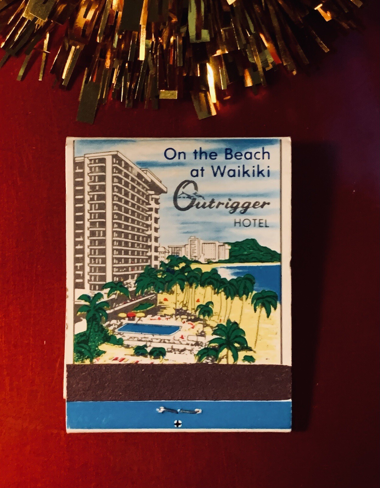 Waikiki Hawaii ~ The Outrigger Hotel ~ Blue Dolphin Room ~ Vintage Matchbook ~