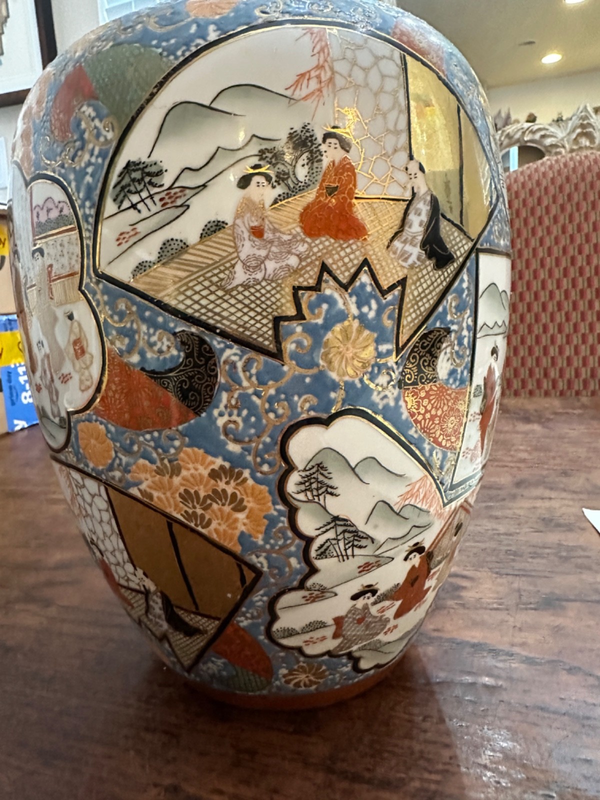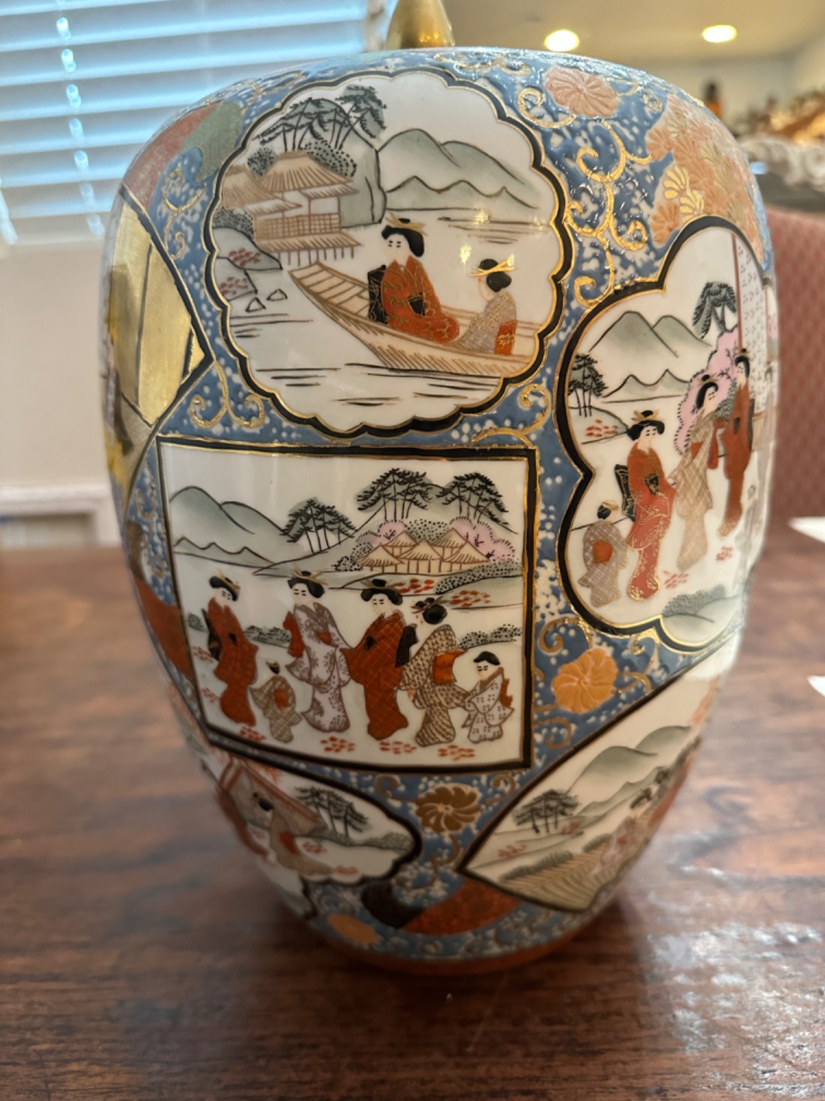 Chinese Satsuma Jar with Geisha Girls, Hand Painted Raised Paint