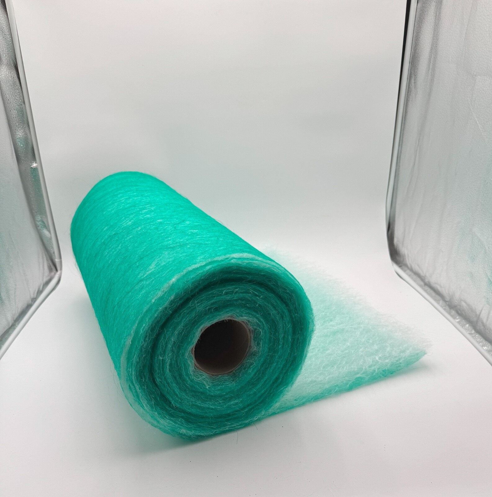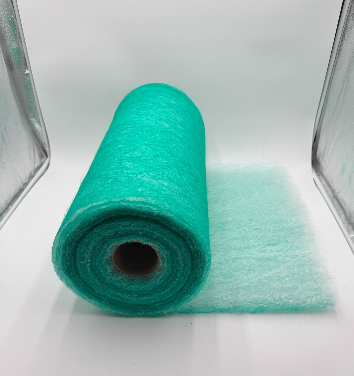 Lightweight fiberglass media captures paint particles in spray booth exhaust systems Green faces air direction, white side captures paint—helps your team install filters correctly every time Exceeds applicable environmental standards for spray booth exhaust filtration, supporting regulatory compliance for finishing operations Compatible with both crossdraft and downdraft exhaust systems — for auto body shops, cabinet finishing, and industrial applications