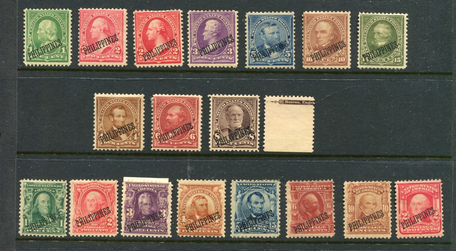 Philippines Lot of 18 Overprinted US Issue Mint Stamps, Scott CV $520+