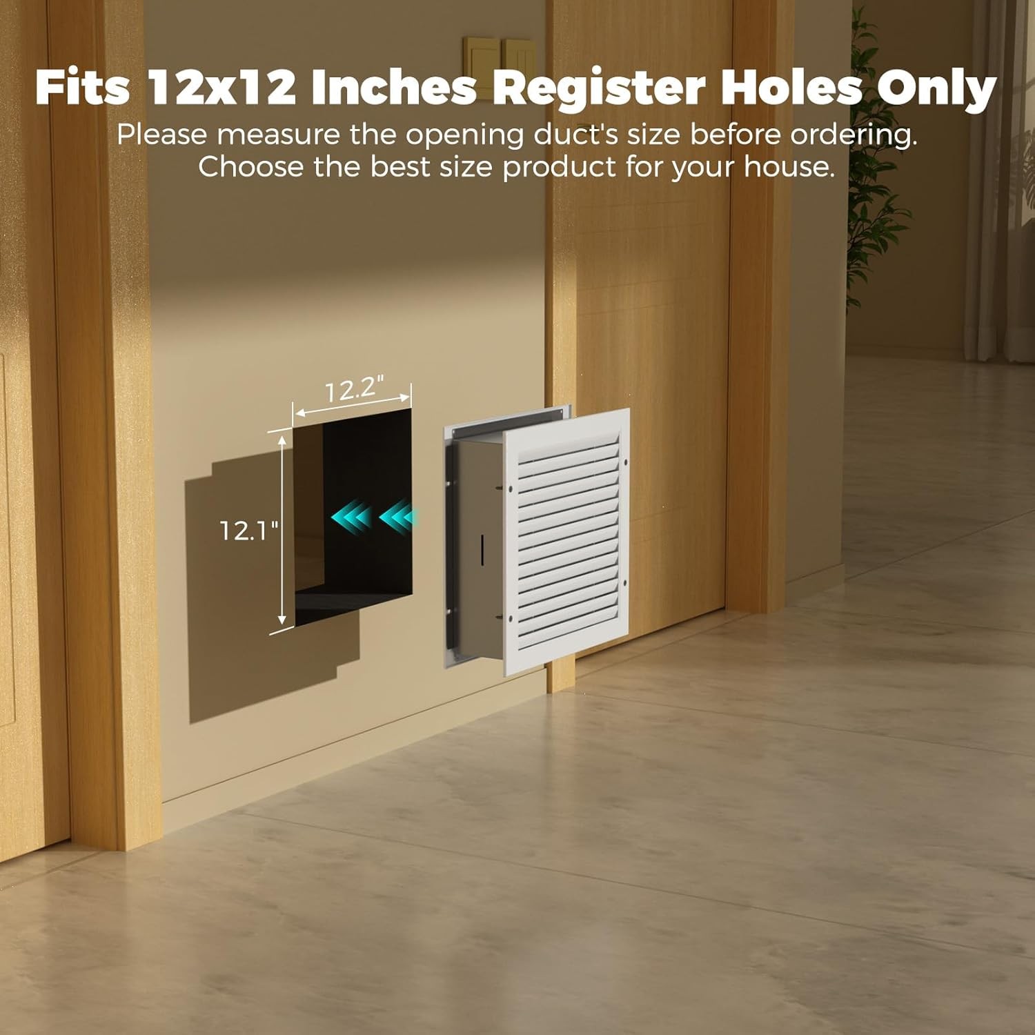 Filter Click there:ALORAIR 1 Pack PP Filter for Wall Return Air Pathway AIRRP 1212ALORAIR Wall Return Air Pathway Kit with Filter (12"x 12" Retrofit), AIRRP 1212 Matte White Zone Air Pathway, Wall to Wall Vent, Wall Air Vent Cover for SidewallStable Air Circulation: Using the ALORAIR Return Air Pathway balances indoor and outdoor air pressure and prevents uneven room temperatures. Installing the air return grille is a simple way to improve air flow in your home. It enhances the efficiency of HVAC systems, which saves time, energy, and money, and makes your home more comfortable.Long Lasting: This vent is made of durable metal material. The shell is made of cold rolled steel, sprayed with plastic powder, the surface is matt, anti-corrosion, anti-rust, anti-fading. It is durable and easy to clean.Easy Installation: No need to install crossover or jump ducts with this convenient in-door vent. The retrofit two piece metal frame is expandable for ease of use. Included instructions make installation quick and simple.Dimensions: The wall air vent opening