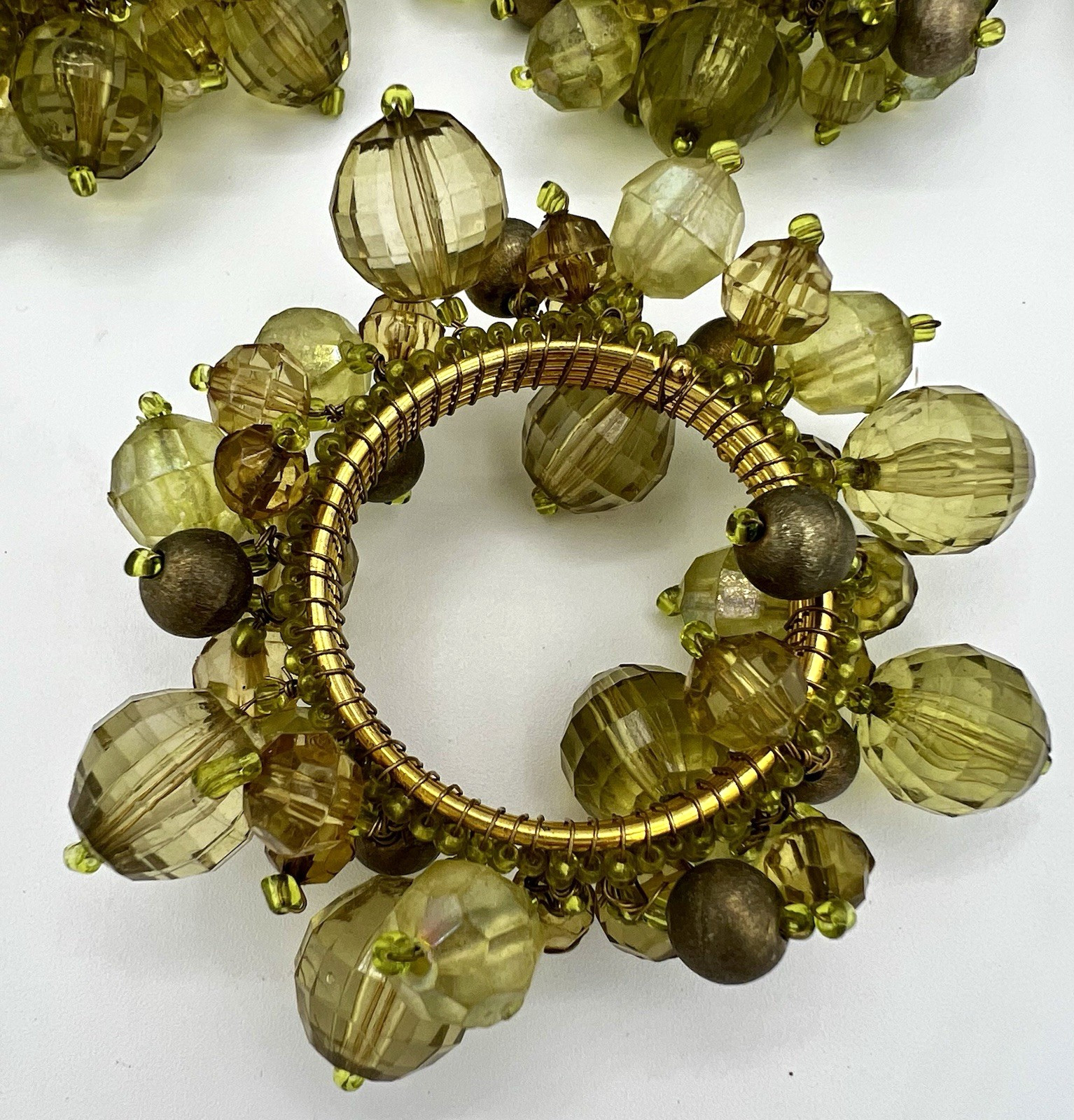 9 Bodrum Giselle Faceted Beaded Napkin Rings Lime Green on Gold