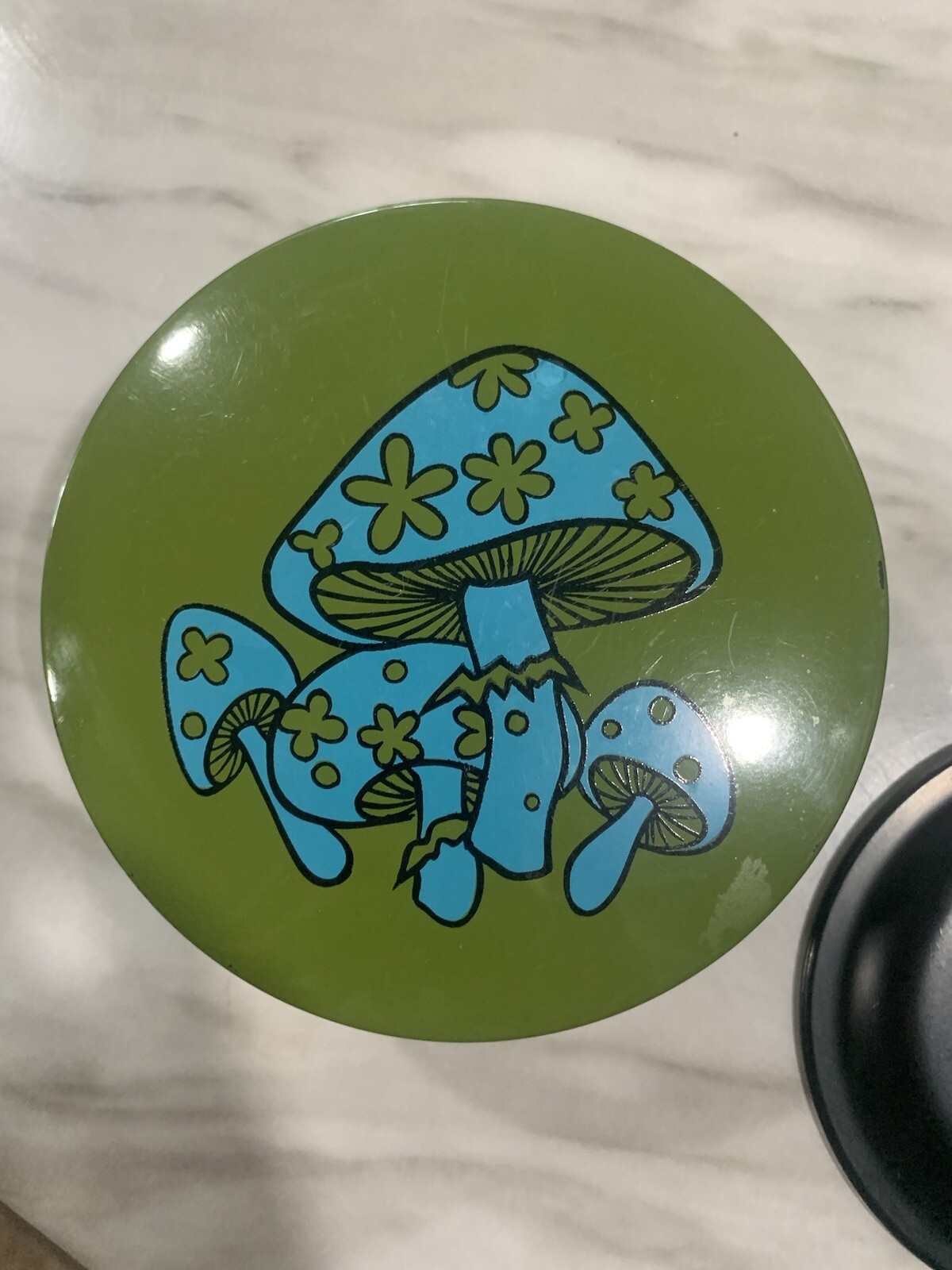 This vintage 1970s Takahashi of Japan mushroom drink coasters set is a collectible tabletop accessory with a distinctive green psychedelic design. Condition is used; review the listing photos and notes for exact wear, included pieces, and any marks from age and prior use. Free shipping is included with purchase, and the item will be packaged to help prevent damage in transit. Check the listing for details.