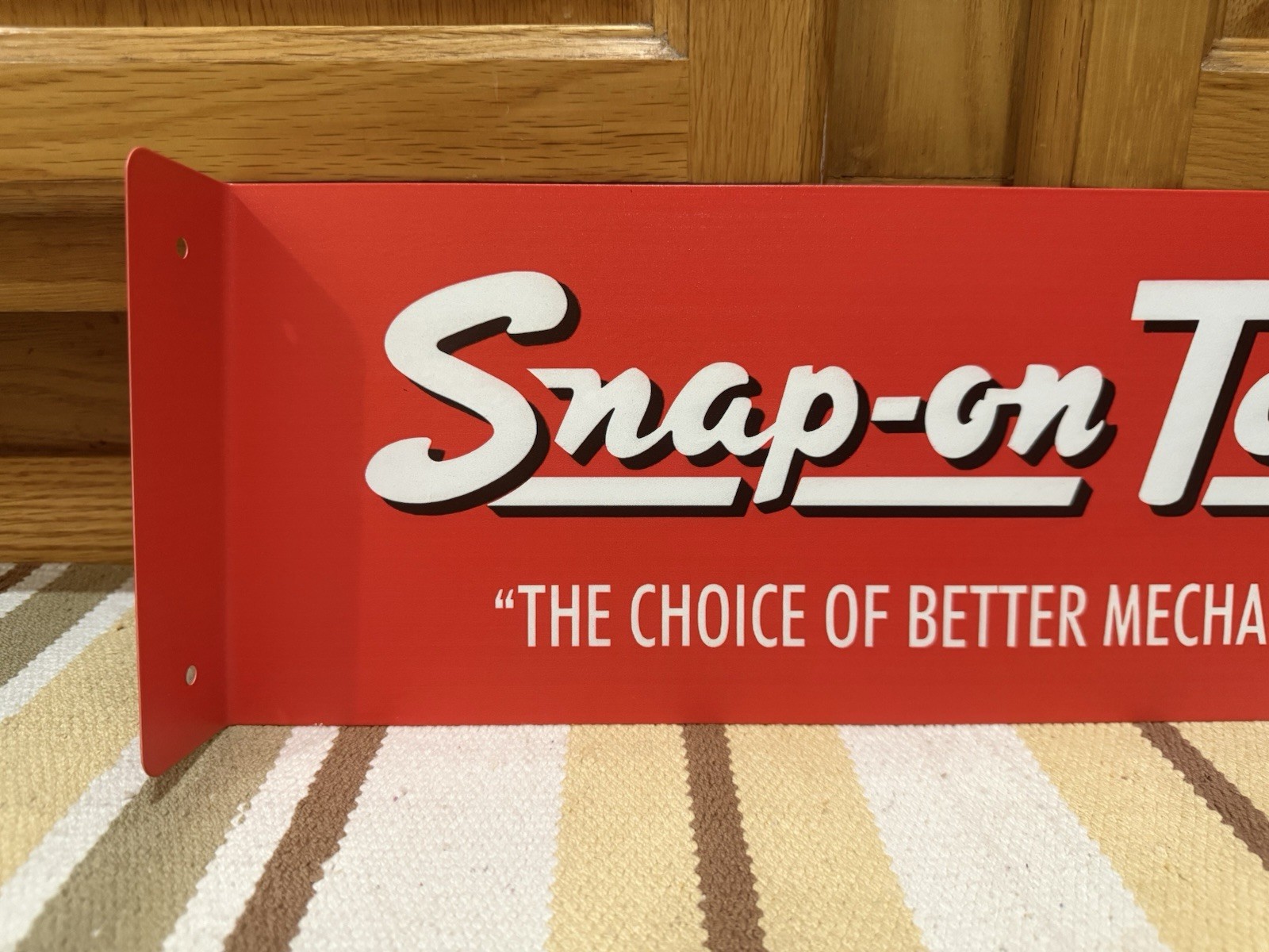 For sale is a metal Snap-On Tools flange sign. Very unique and well made that gives it that extra touch to your Home, Studio, Theater Room, Man-Cave, Workshop, Garage, Game-Room or anywhere you decide it looks good.Dimensions: 15 3/4” x 6”We add new items daily. I also have multiples of most signs so if you need more send me a message through eBay and I will let you what I have available.If you have any questions please feel free to ask and be sure to check out our other items. Thank you!