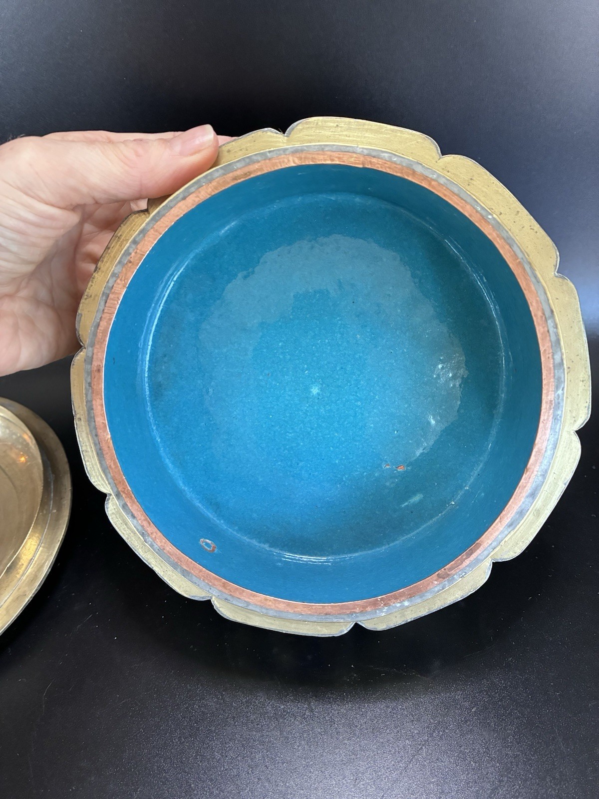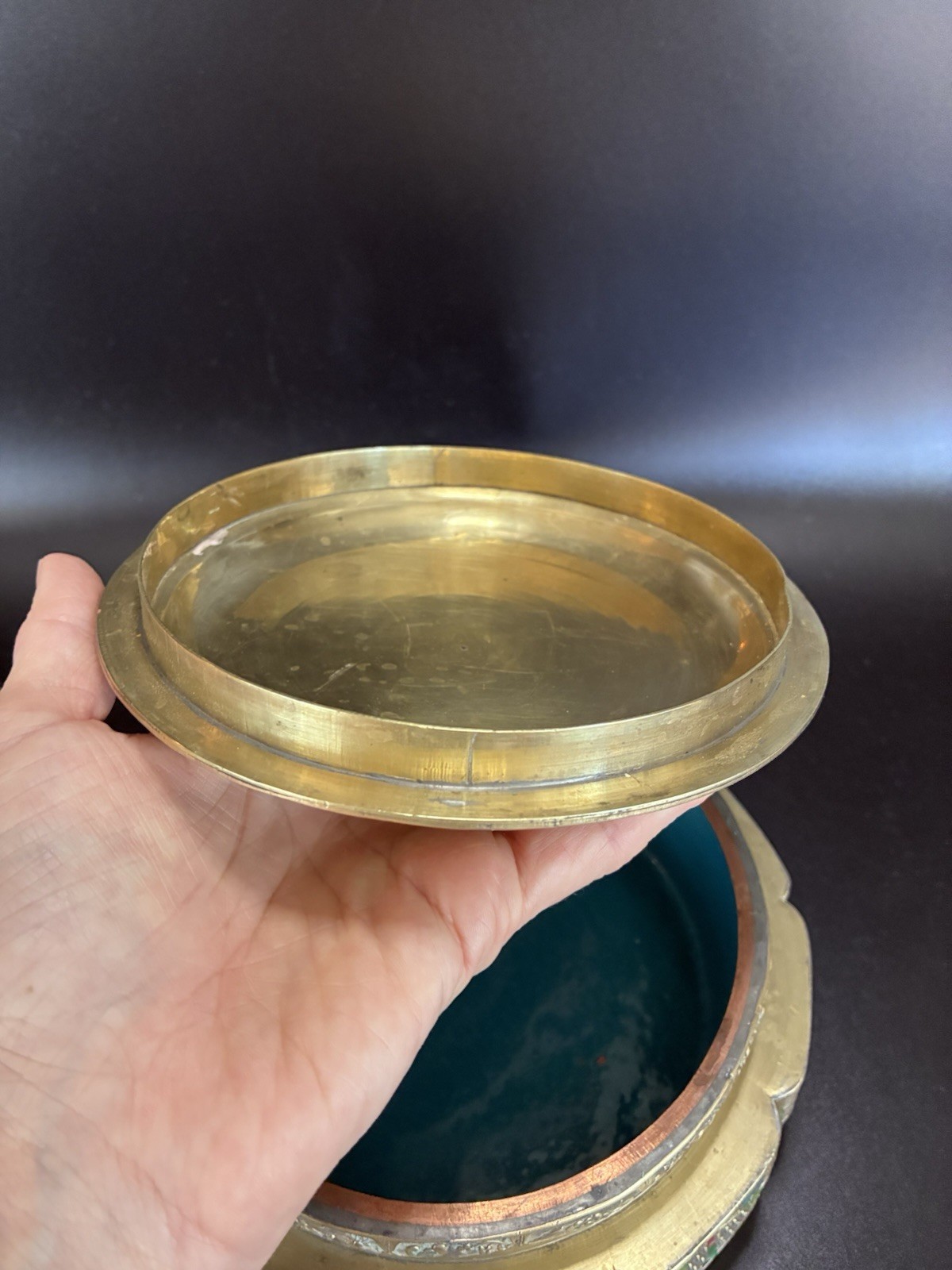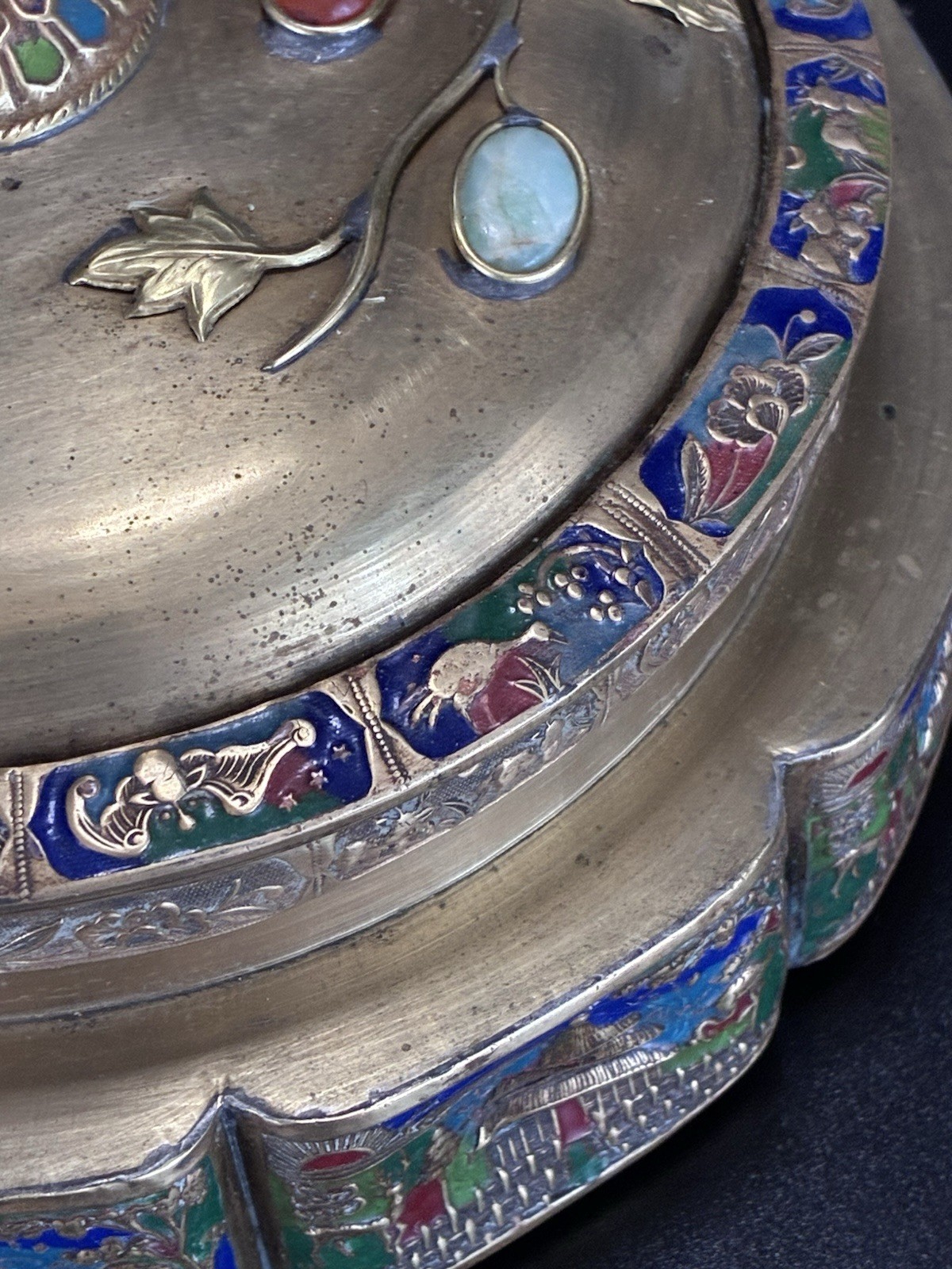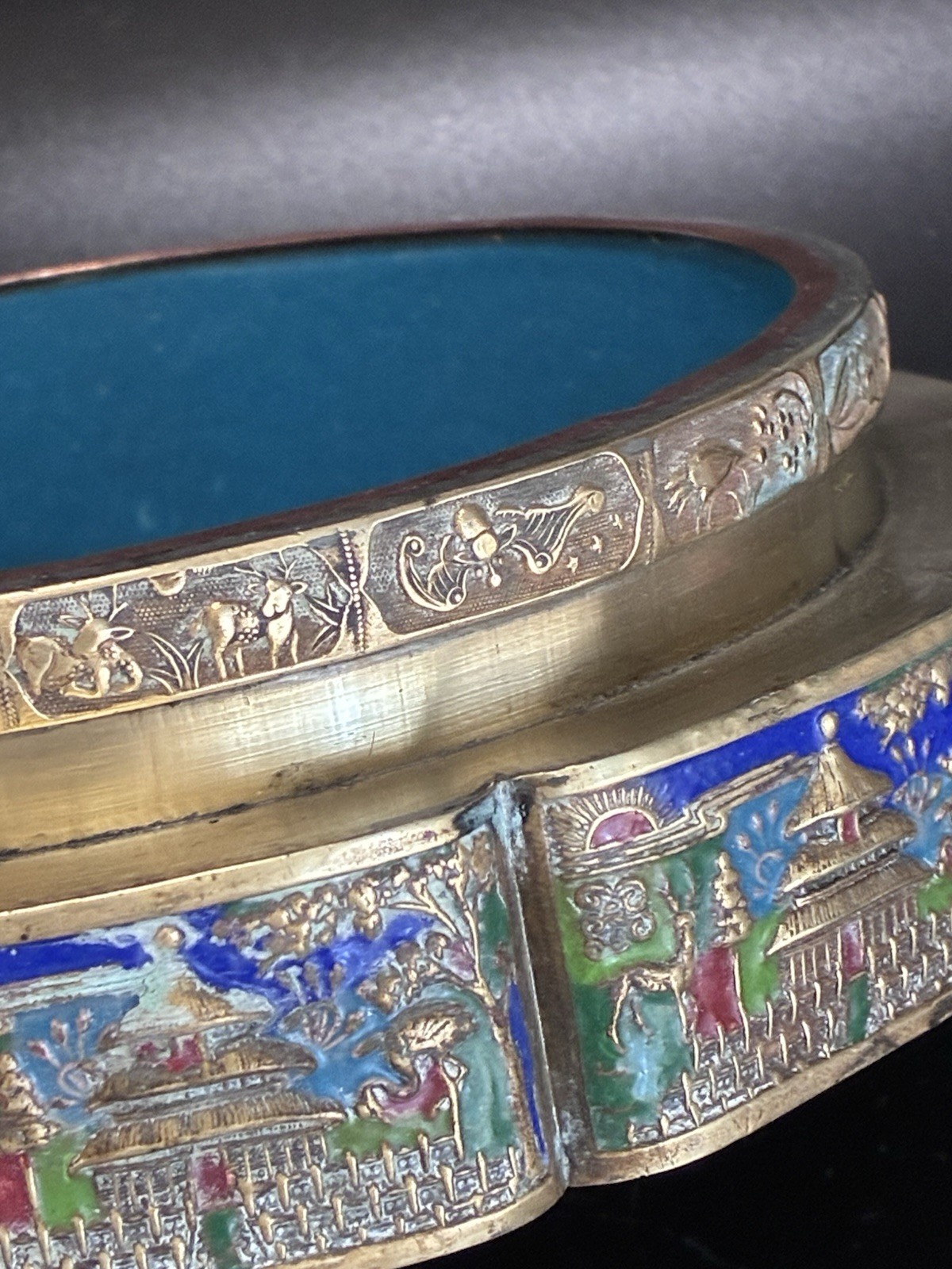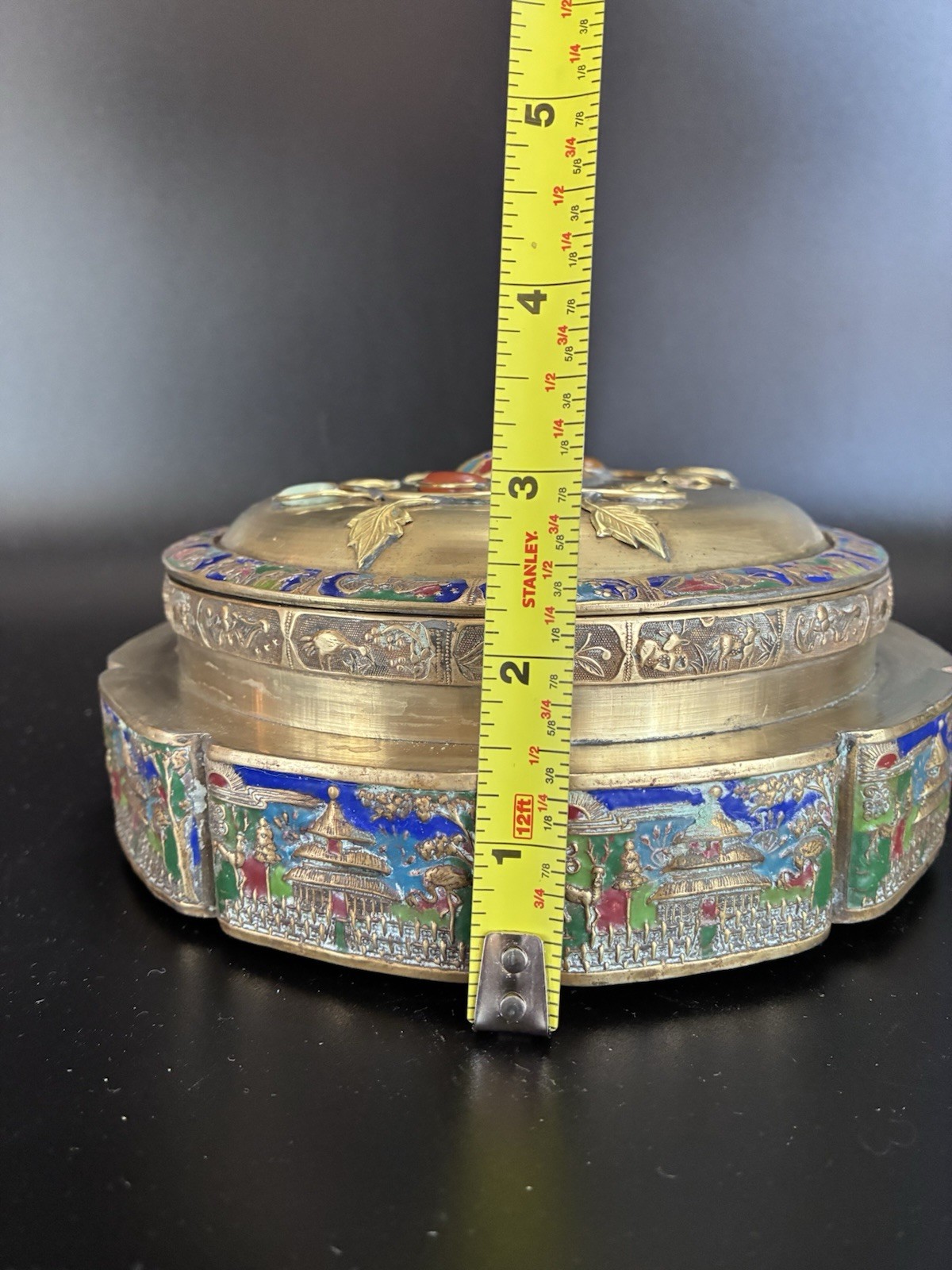 Vintage Chinese Tea Caddy Box - Repousse Brass Enamel Relief, Used
