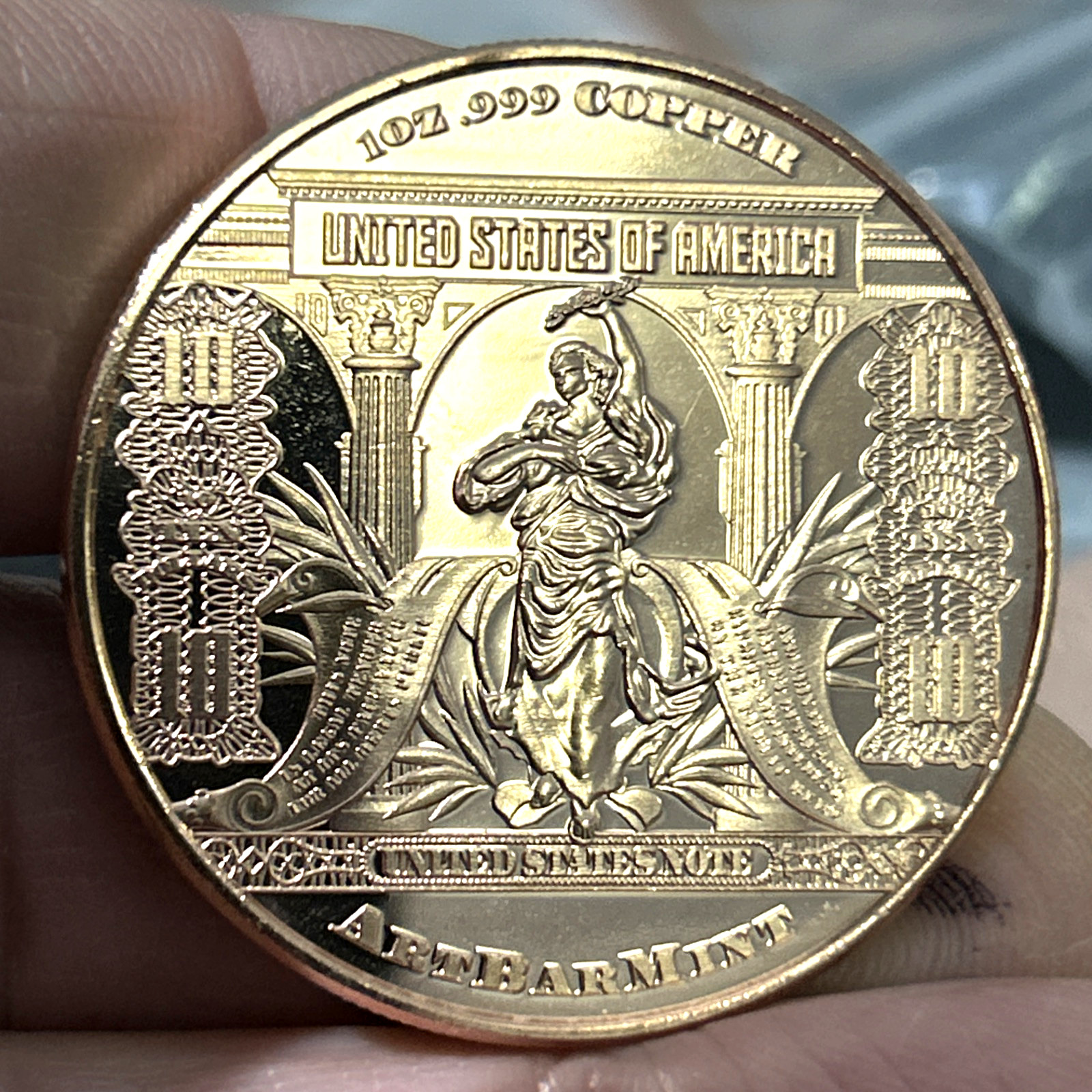 TEN DOLLAR Bison Note Token Coin 1 oz Pure Copper - USA