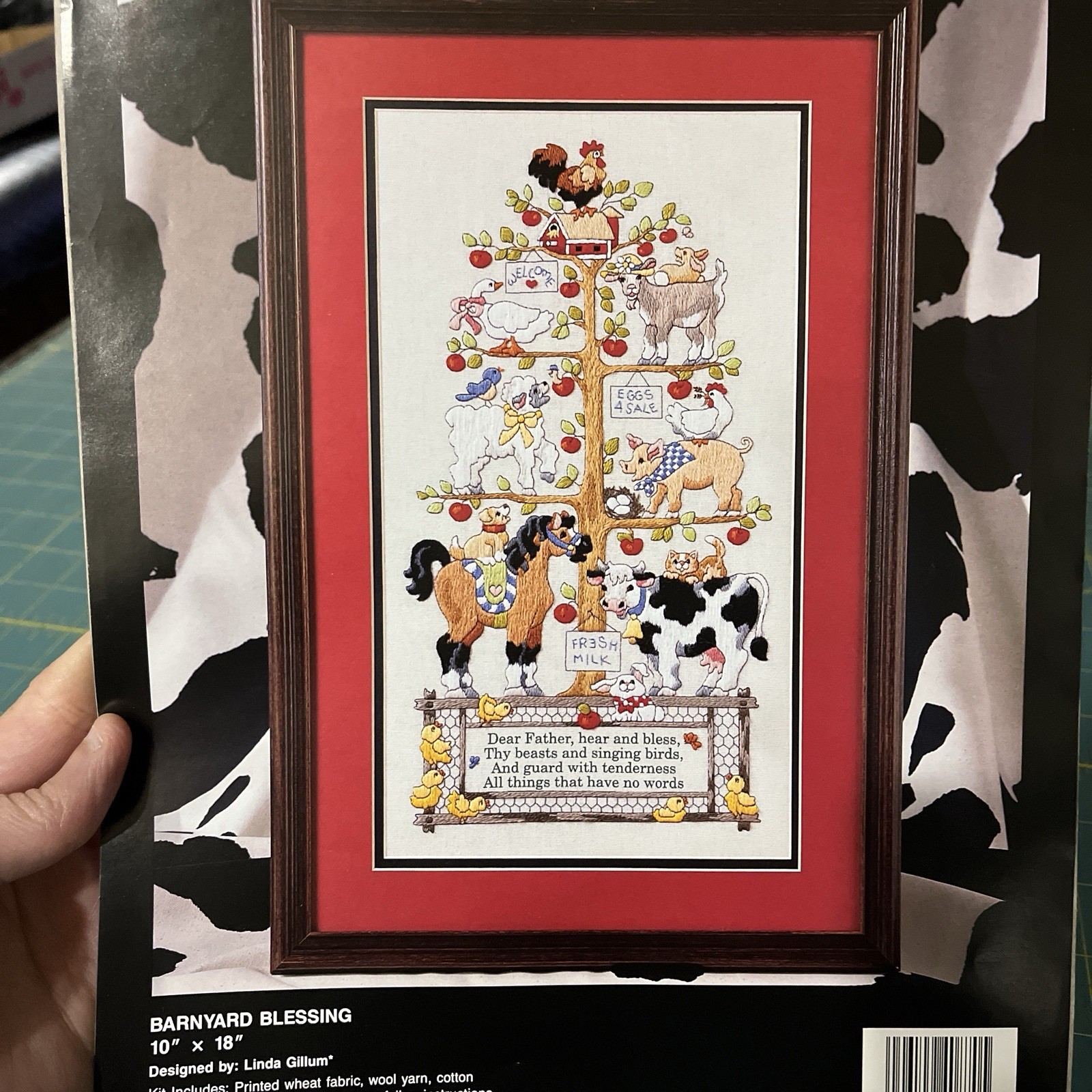 Bucilla Barnyard Blessing Cow Pig Sheep Tree Stamped Crewel Embroidery Kit
