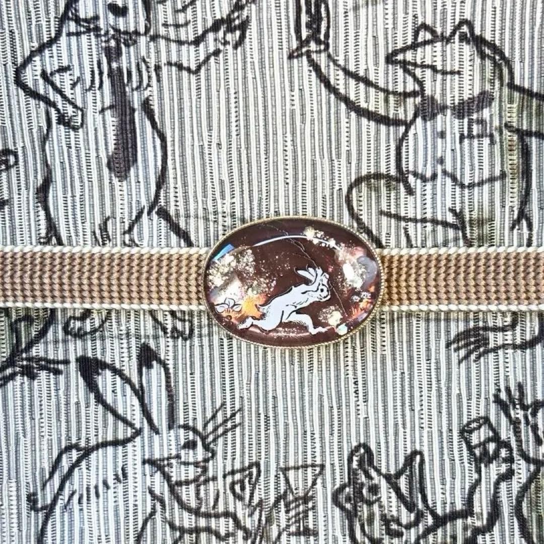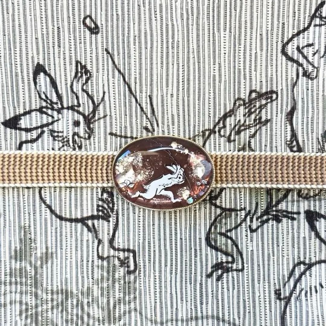 Obidome with Choju Giga and Choju Jinbutsu Giga designs, brown, chestnut, suitab th td Description ◎Obidome Choju Jinbutsu Giga Brown/Maroon"I still love Choju Giga"We have created an obidome designed with the rabbit scene, a classic scene from the Choju Jinbutsu Giga PAINTING, as its motif.This obidome sparkles in the sunlight, adding a touch of elegance to your kimono.It turned out very cute, so I hope you enjoy wearing it. Payment Please pay within 5 days. Shipping Shipping from Japan with Tracking Number & Insurance. We usually ship out your order within 4-6 working days after receiving your payment. International Buyers - Please Note: Import duties, taxes, and charges are not included in the item price or shipping cost. These charges are the buyer's responsibility. Please check with your country's customs office to determine what these additional costs will be prior to bidding or buying.